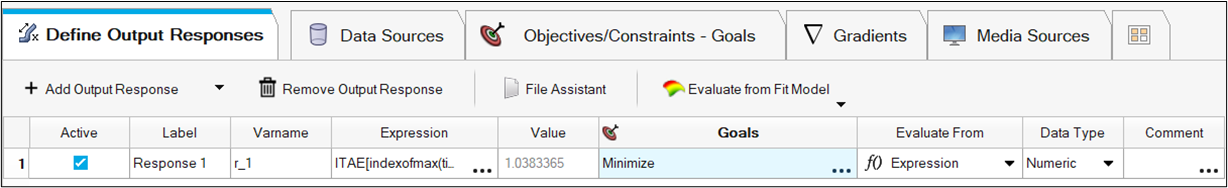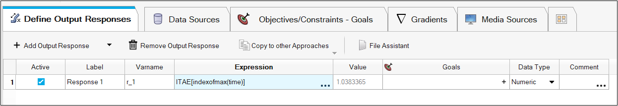 The last value is now shown in the Value column.Figure 10. Using the Last Value of ITAE as a Response The model setup in HyperStudy is now complete.