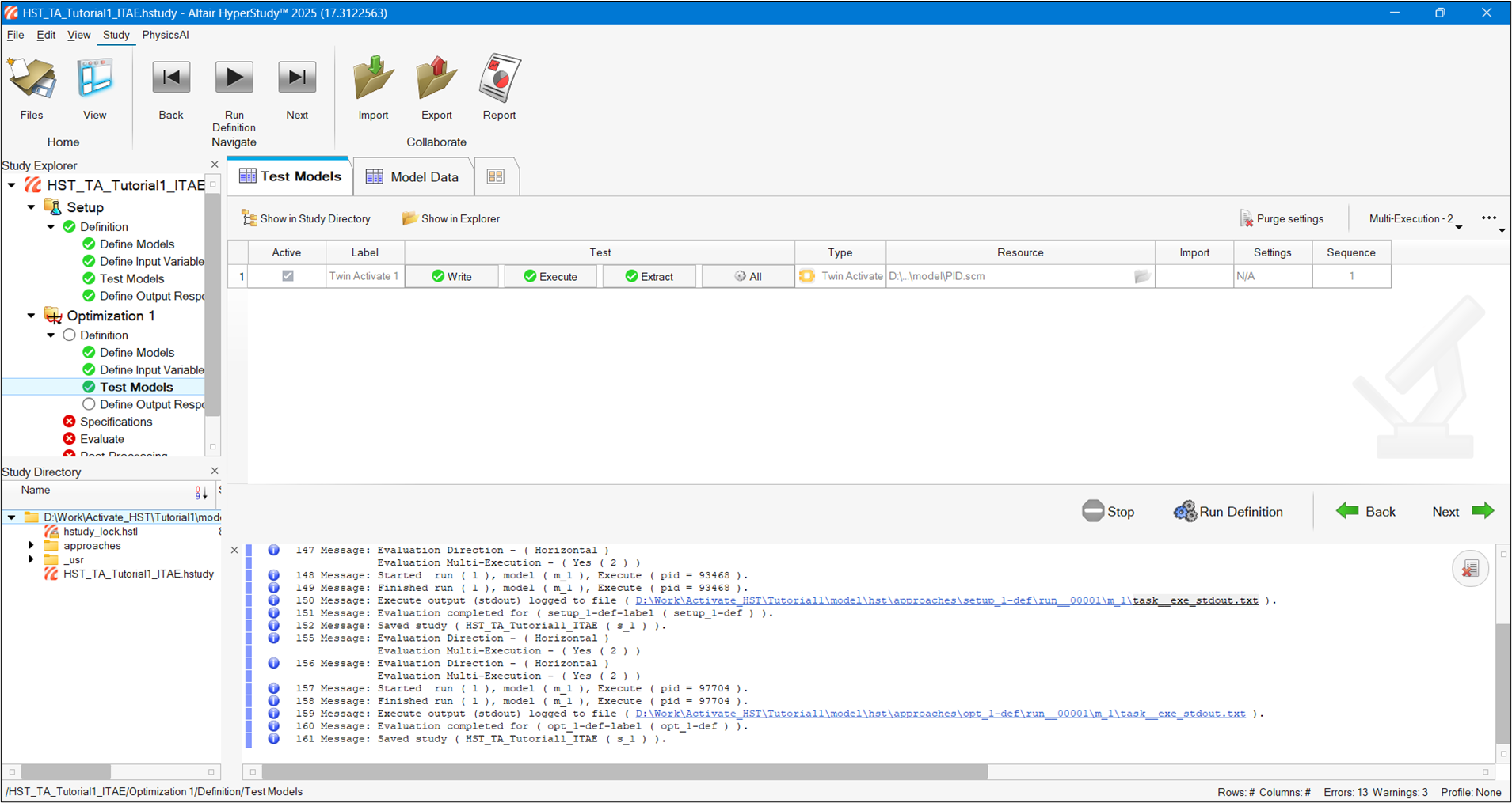 The path can be defined in Edit > Register Solver Script.Figure 6. Twin Activate Model Added in HyperStudy