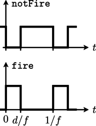 The firing signal is generated by comparing the sampled duty cycle input with a periodic saw tooth signal [Williams2006].