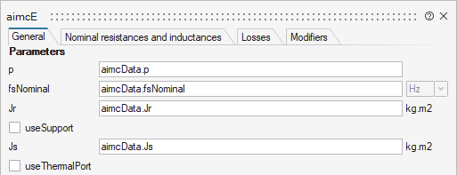componentName=FromModelica('componentName');としてコンポーネント名を追加する必要があります。以下の例では,aimcEコンポーネントがaimcDataコンポーネントのパラメータを参照しています. ダイアグラムダイアログのコンテキストタブで、