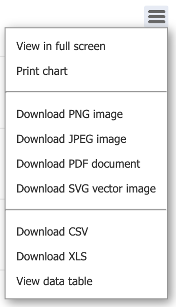 Click the icon to export the chart in various formats