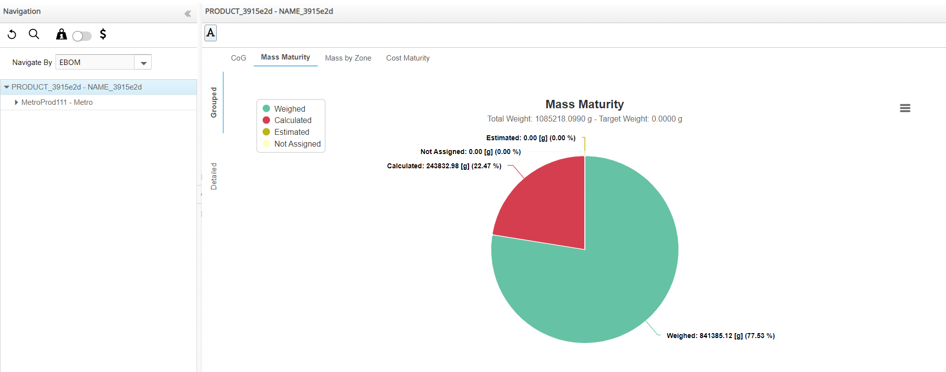 Note: The total weight of the part or Product selected in the navigation panel is displayed in the chart area. -