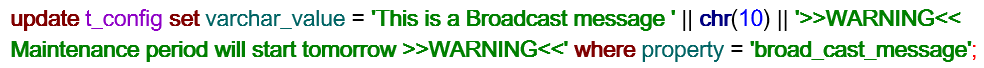 As a WA Administrator, you can insert a warning broadcast message that is immediately visible to all users connected to WA.