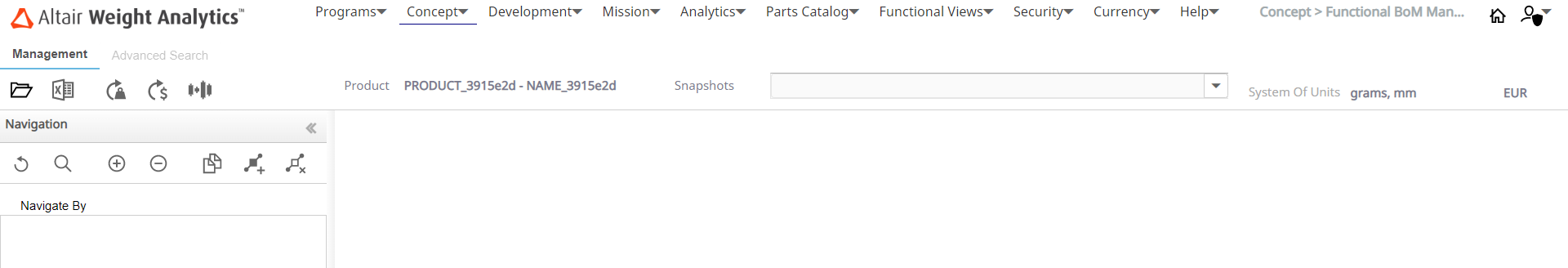 WA is considered the master tool in the Concept phase and returns the exact weight and CoG for all the BoMs to the Weight Manager. This happens at the very early stage of development, when P/Ns are still not available and you have a breakdown a Functional View. Generally, in the initial phases of product development, individual parts-related limited information is available in the Product. In such cases, you can use a Concept to start putting together a system and sub-system weight estimation or target for a product. WA allows you to perform 'what-if' analysis and trade-off studies in the early phases to minimize downstream re-design costs and time-to-market.