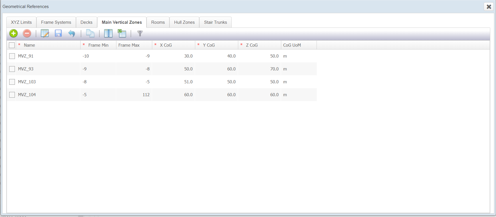 - Define Main vertical zone Name, Fame min , XCOG,YCOG,ZCOG