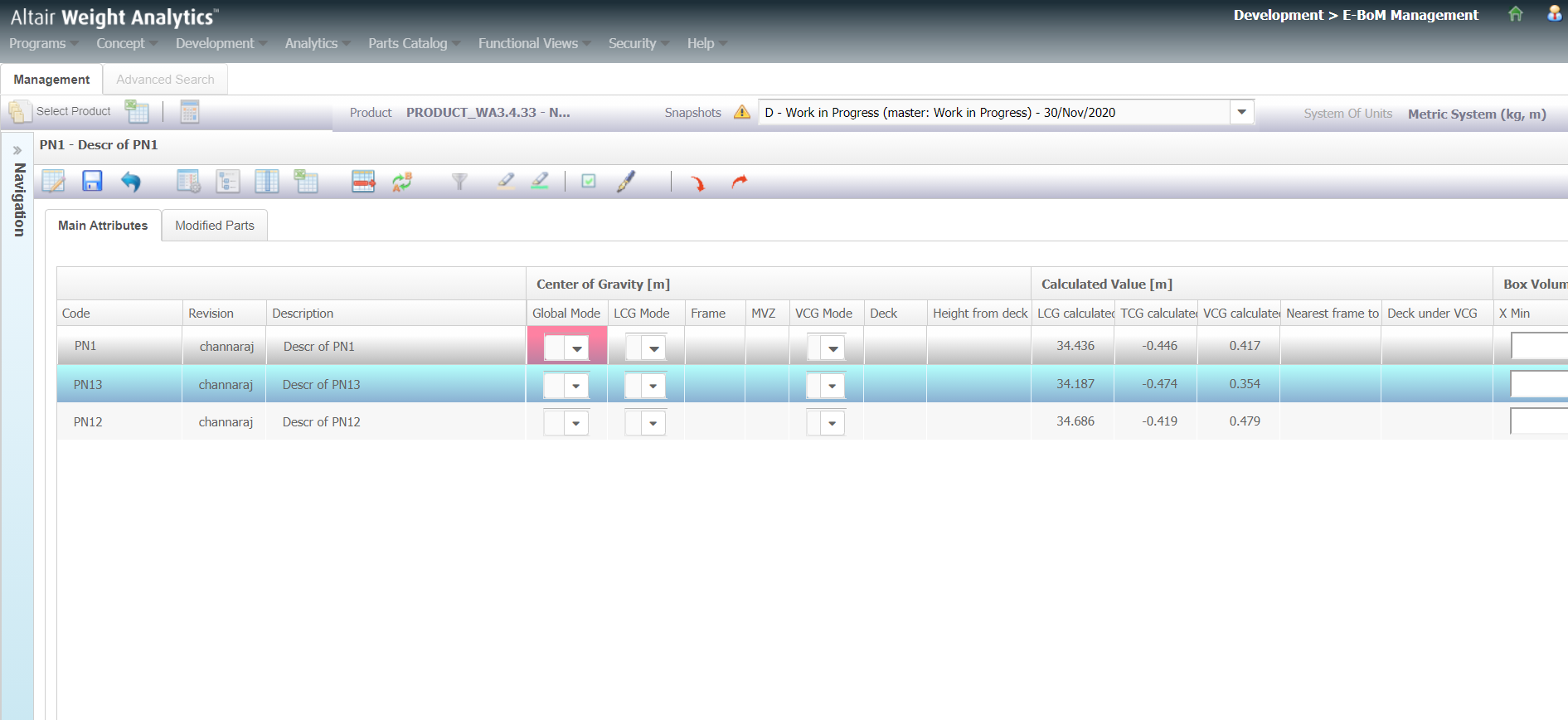 selection will affect LCG, VCG and TCG coordinates.