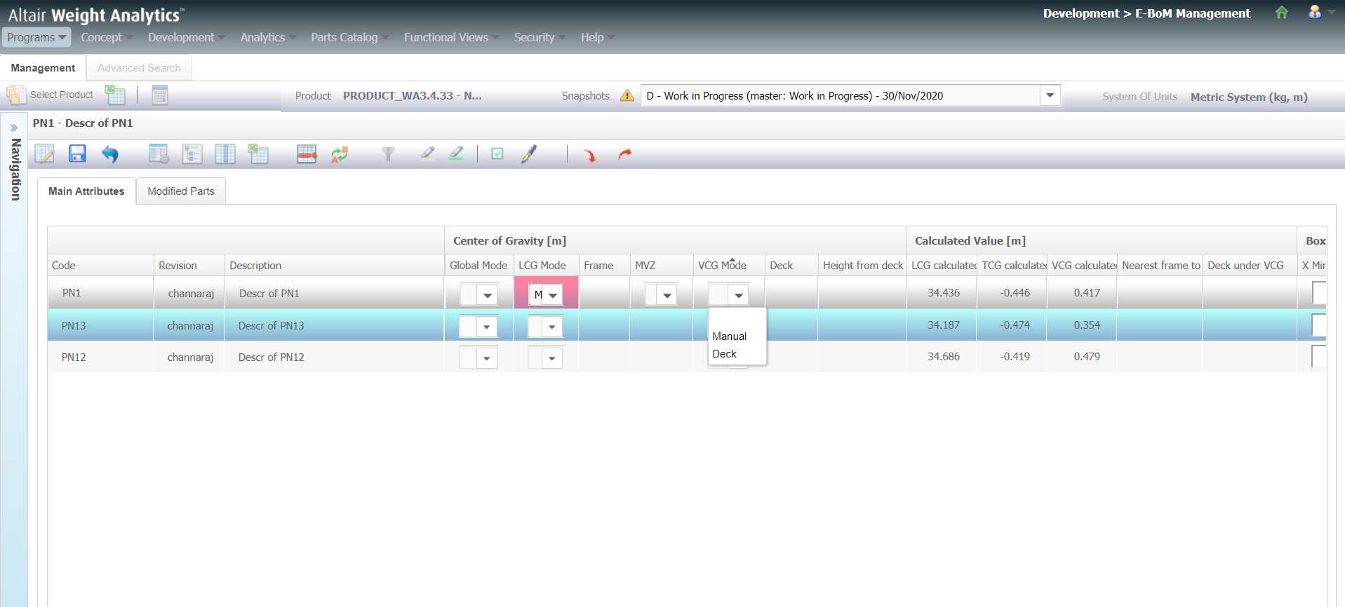 to the prediction, determination, management and tracking of the weight, Center of Gravity, and Moment of Inertia