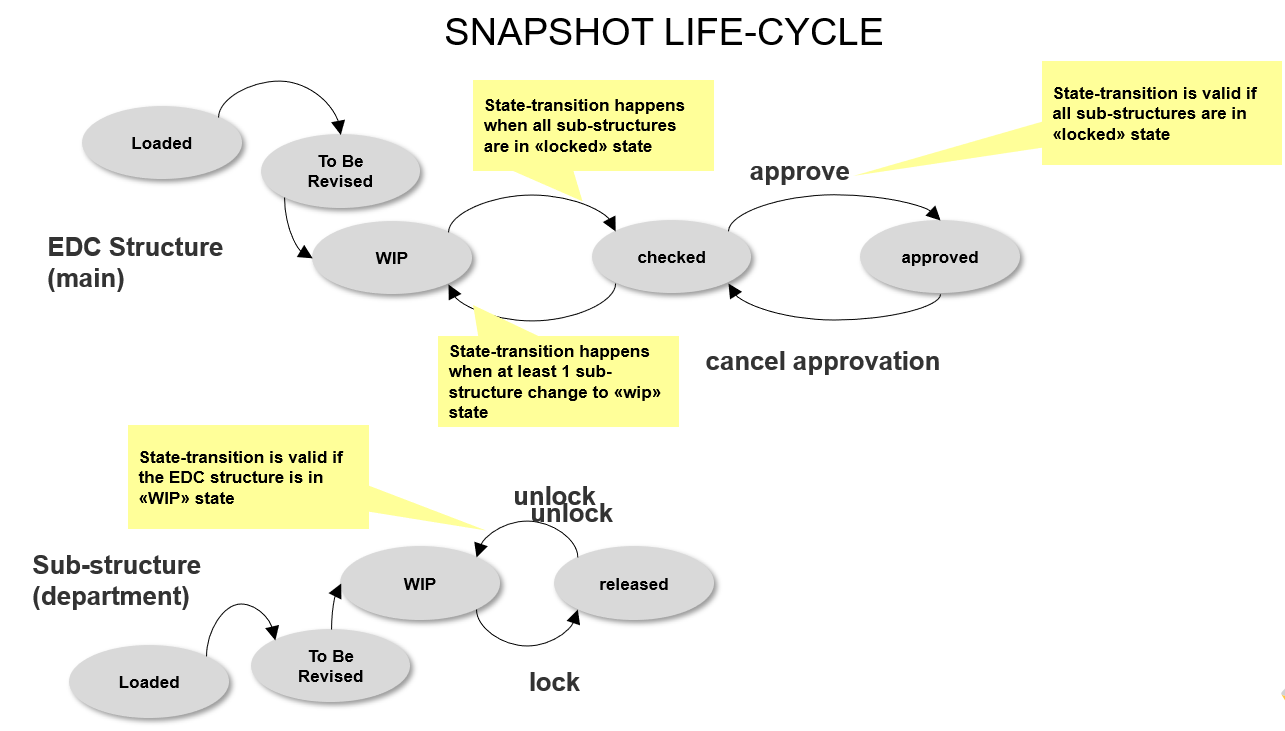 - Some EDC Snapshot life cycle state transitions () are performed automatically by WA when the related Department Snapshot state