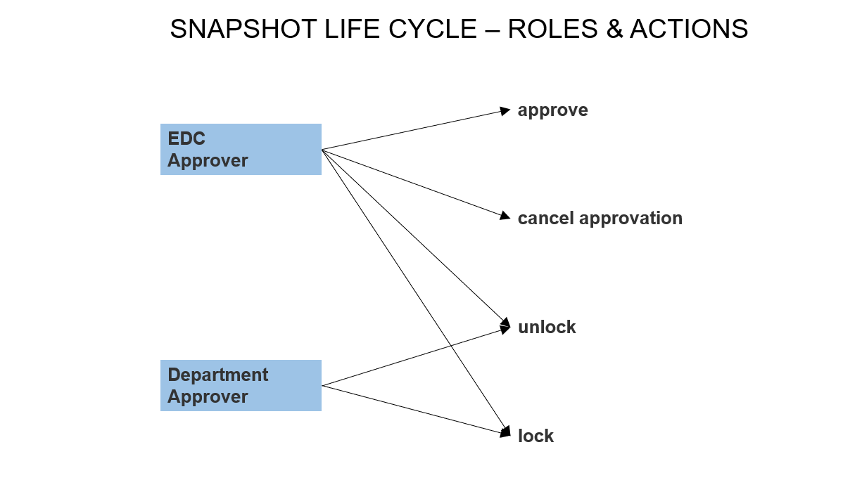 - Users with EDC-Approver Role can change state to EDC Snapshots and Department Snapshots.