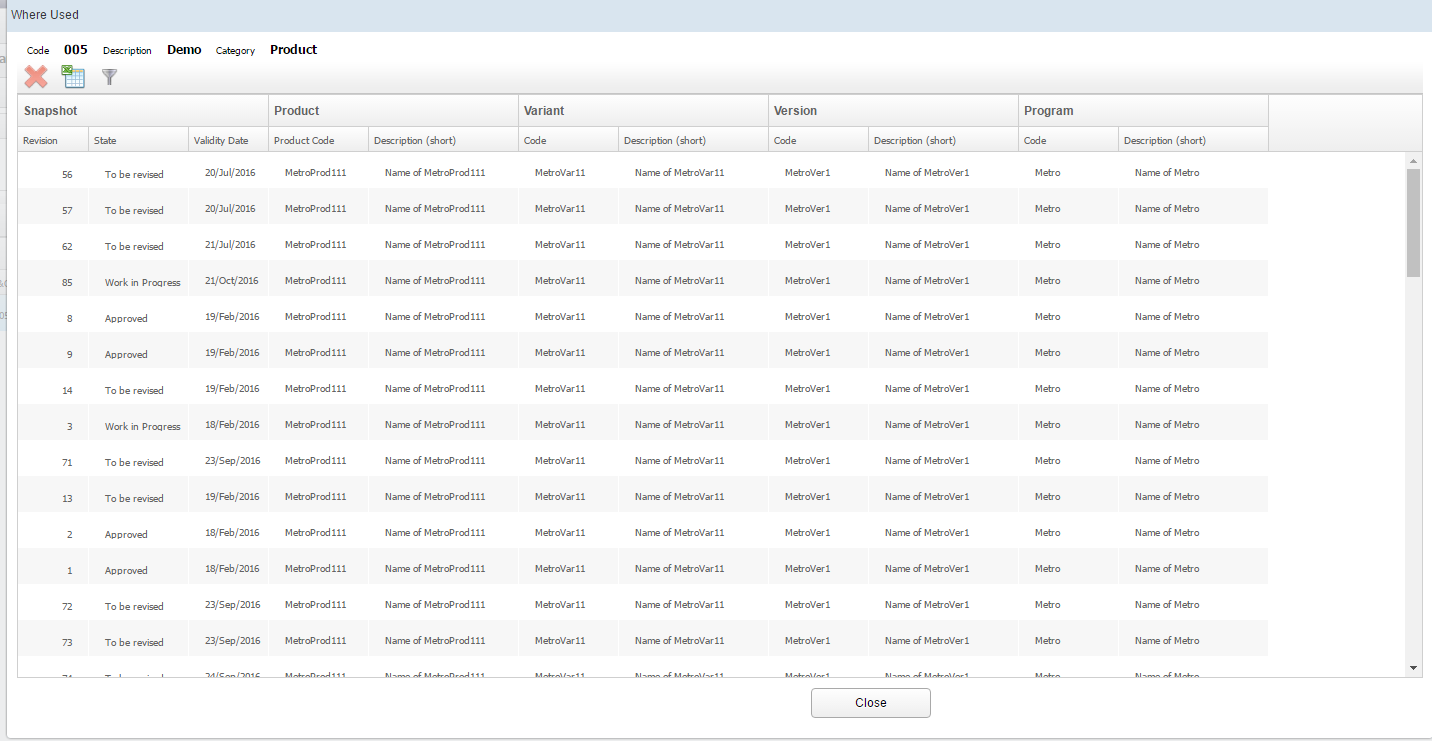 : Deletes any Product Impact.- Select a row from the Product Impacts list.