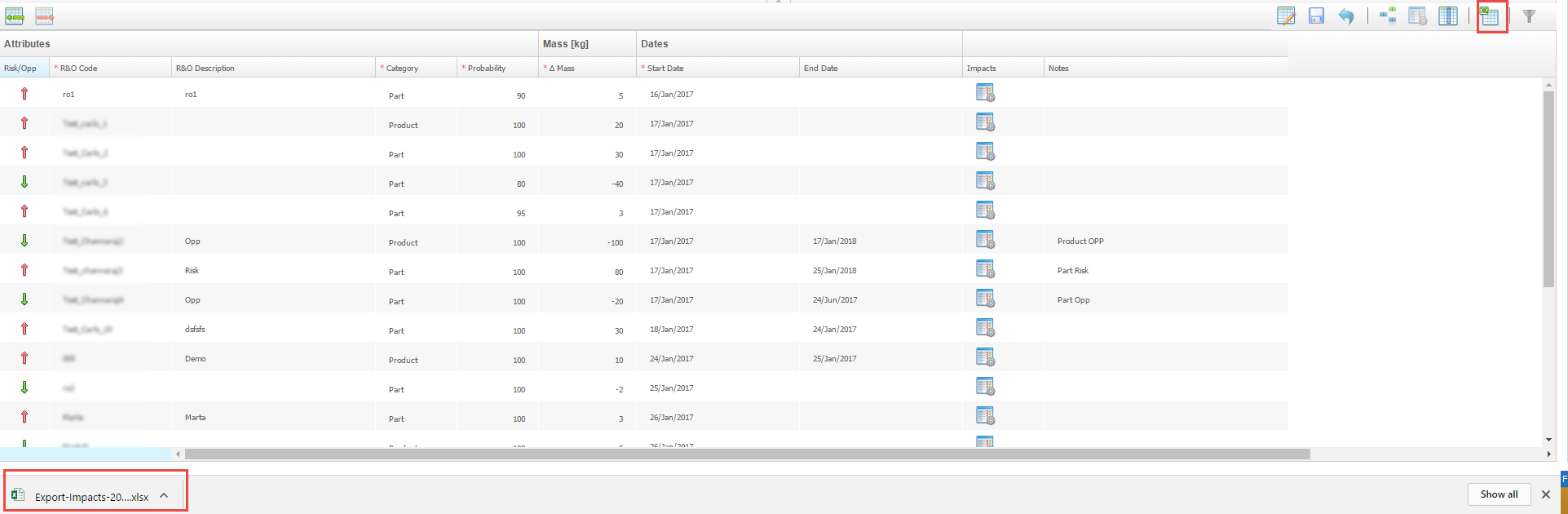 1. Click on the Save as XLSX Report button in the Attribute section.