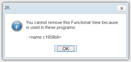 If a Functional View is used in a Program, then WA will not delete the Functional View and displays the following message: