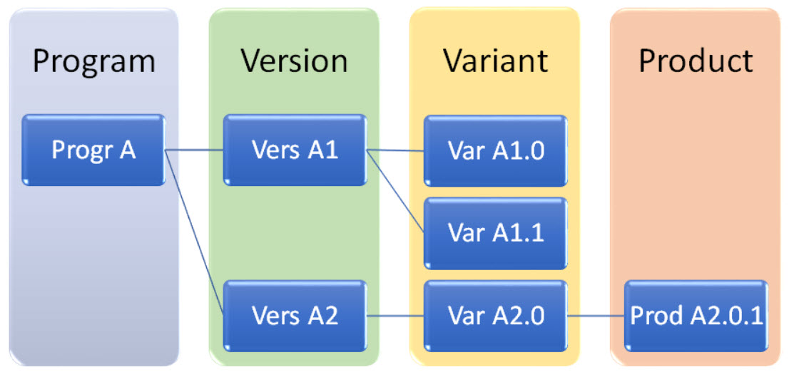 On the Home page, a list of programs, versions, variants, and products are displayed on the right side of the window as per the user profile. There is a default hierarchical structure that WA uses to manage BoM data such as Program, Version, Variant, and Product.