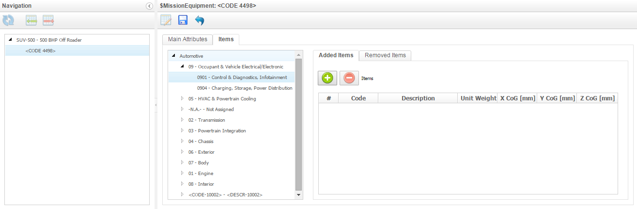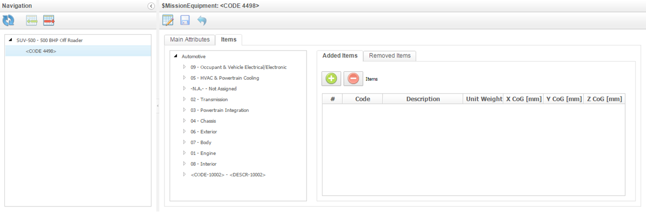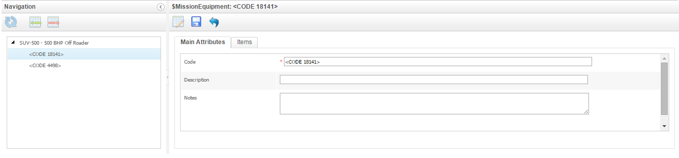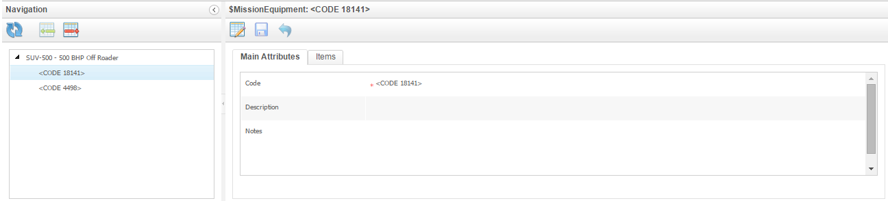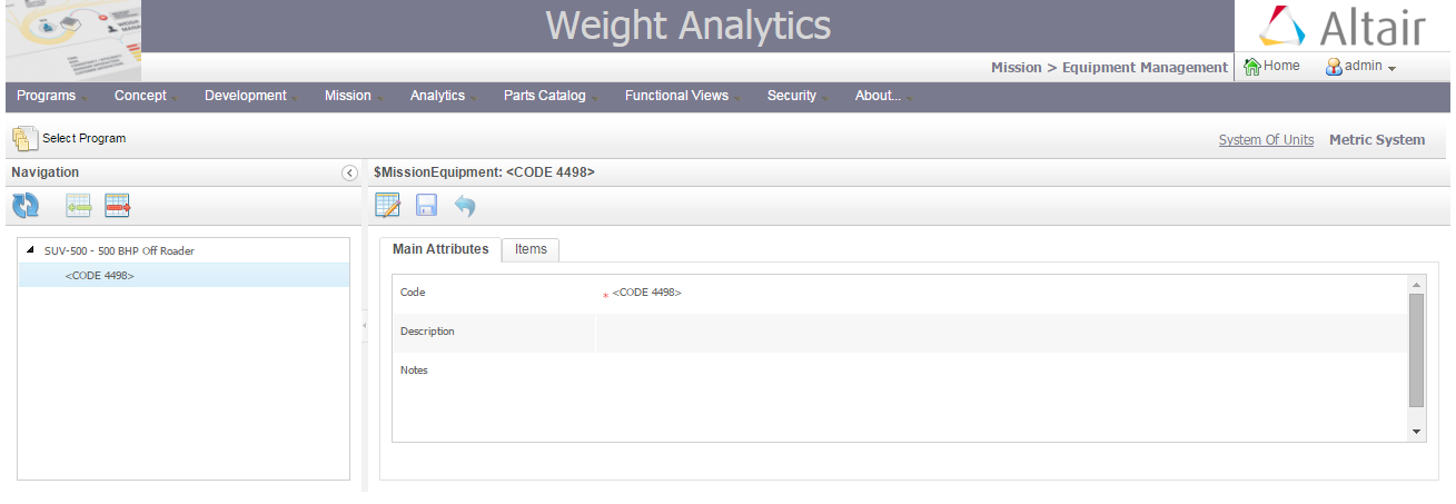 When you pre-select a Program with an equipment item, the Equipment Management page is displays the Main Attributes