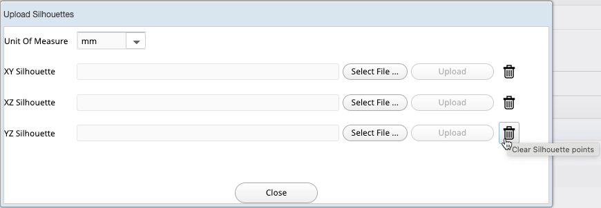to clear the selected Silhouette points. - When you upload a XY Silhouette file (used in Top View), only the