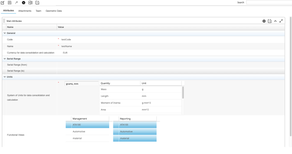 Attribute Specify Code Indicates the name or code of the Program. Description (short) Indicates the short description of the Program. For example, "Sports Utility Vehicle".Description (long) or Name Indicates a longer description to provide more information about the Program. Serial Range (from) Indicates the starting value of the serial numbers to be used for numbering the child entities of the Program. Serial Range (to) Indicates the range ending value of the serial numbers to be used for numbering the child entities of the Program. System Of Units Indicates the system of units to be used for all calculations related to the Program. Year Of First Cut Shipping Indicates the year of first cut shipping for this Program. Functional Views Indicates the selections for BoM Management and Reporting. Notes Indicates additional information that can help the users of the Program. - Specify the name to be used in the Code field.