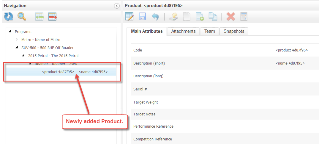 A new Product is added under the selected Program.