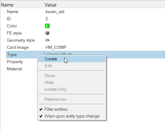 In this step, you will create an arbitrary property in HyperMesh.