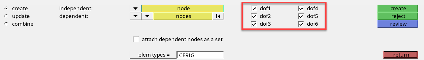 Create Coupled DOF - Rigid Elements