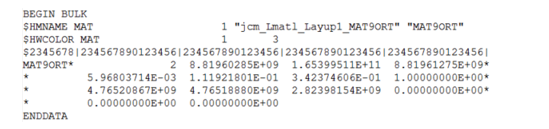 Figure 16. Homogenized Composite Properties in OptiStruct MAT9ORT Format
