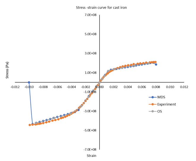 Figure 8. Stress-Strain Curve of Cast Iron from Multiscale Designer and Experiment