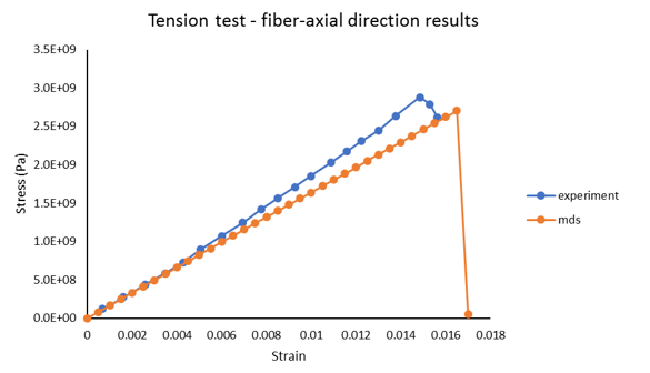 Figure 14. Comparison of Stress-Strain Curves. fiber-axial tensile test from Multiscale Designer and experiment