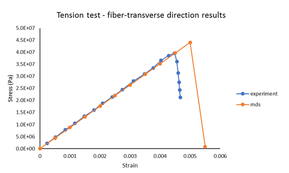 Figure 15. Stress-Strain Curve. fiber-transverse tensile test from Multiscale Designer and experiment