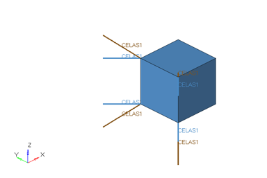 Figure 6. Unit CHEXA Cube Element Model Connected to Springs
